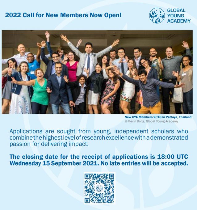 Deadline: September 15, 2021 The Global Young Academy gives a voice to young scientists around the world. Applications are sought from young, independent scholars who combine the highest level of research excellence with a demonstrated passion for delivering impact. The…